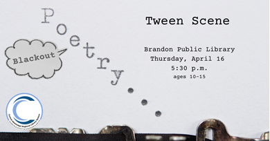 April is Poetry Month! This month for Tween Scene, we will be using old books to create all new and original poetry. We meet the third Thursday of each month at 5:30 p.m.