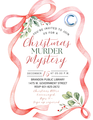 We invite you to join us for our first ever Christmas Murder Mystery. Call the library to save your spot!