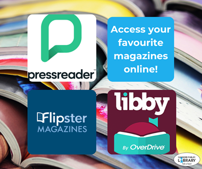 Access your favourite magazines online!   Due to the current delay in regular mail delivery services, some of our print magazines will be arriving at the Library later than expected.   But did you know that many of these magazines can be accessed online with your library card?   Visit the eResources page on our website to explore various digital newspaper and magazine providers such as Consumer Reports; Flipster; Libby by OverDrive; PressReader; Read Alberta eBooks & eMagazines; and more!
