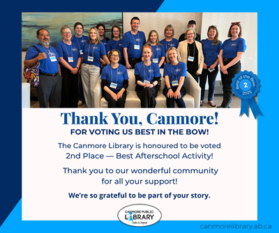 Thank you, Canmore!   We’re honoured to have been voted 2nd Place — Best Afterschool Activity in Best of the Bow 2025!   This recognition means so much to us and reflects the incredible community that supports the Canmore Public Library.   We're so grateful to be a part of your story.    Congratulations to all the winners and nominees!