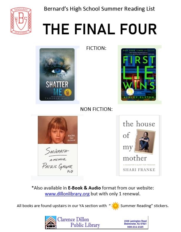 Message from our Children’s Librarian On-line registration has started for the times our popular Rhythm, Rhyme, and Story Time with Miss Caroline will be held in the smaller Children's Library Room (Thursday 6/5). Registration for these dates will begin the Monday before the event. NO REGISTRATION is needed for when Story Time will be hosted in the large, Community Room (6/12 and 6/26). Please go to www.dillonlibrary.org to register for each of your children attending as space is limited. You do not need to register for yourself (as the parent or caregiver / adult attending). __________________________________ Our Summer Reading Program is starting Saturday 6/21!! It's going to be all about COLORS this summer. Our Kid's & Teen Summer Reading Programs are designed for readers aged 5-17 to help encourage life-long reading habits. As your reader has adventures reading this summer, they can earn points, get badges, and receive a completion certificate to print and share. Badges can be turned into raffle tickets for one of our great prizes this summer! Stop by our library to pick up your registration packet or log onto our on-line Readsquared Summer Reading Program to begin logging in your reading: _________________________ High Schoolers: Pick up your Summer Reading books early - don't forget our digital formats too! Congratulations to our Growing Stage: Knuffle Bunny contest winners: Cecilia, Aayan, and Kamila! They recieved tickets to the musical and a book bundle. _______________________ Tumblebooks have been added to our kids page, as well as to the Research Databases page under Young Readers, E-books, and Books and Literature. TumbleBooks are Story Books – Chapter Books/Read-Alongs – Non Fiction stories, plus Language Learning videos, puzzles & games created by taking existing picture books, adding animation, sound, music, and narration to produce an electronic picture book which you can read, have your child read, or have it read to them. There are even books in foreign languages! TumbleBooks are GREAT for children and teens! ______________________________________ Our Instagram page (@CDPLkids) is up and running - check us out!  Visit and follow us! Maria Provini Children's Librarian, MLIS