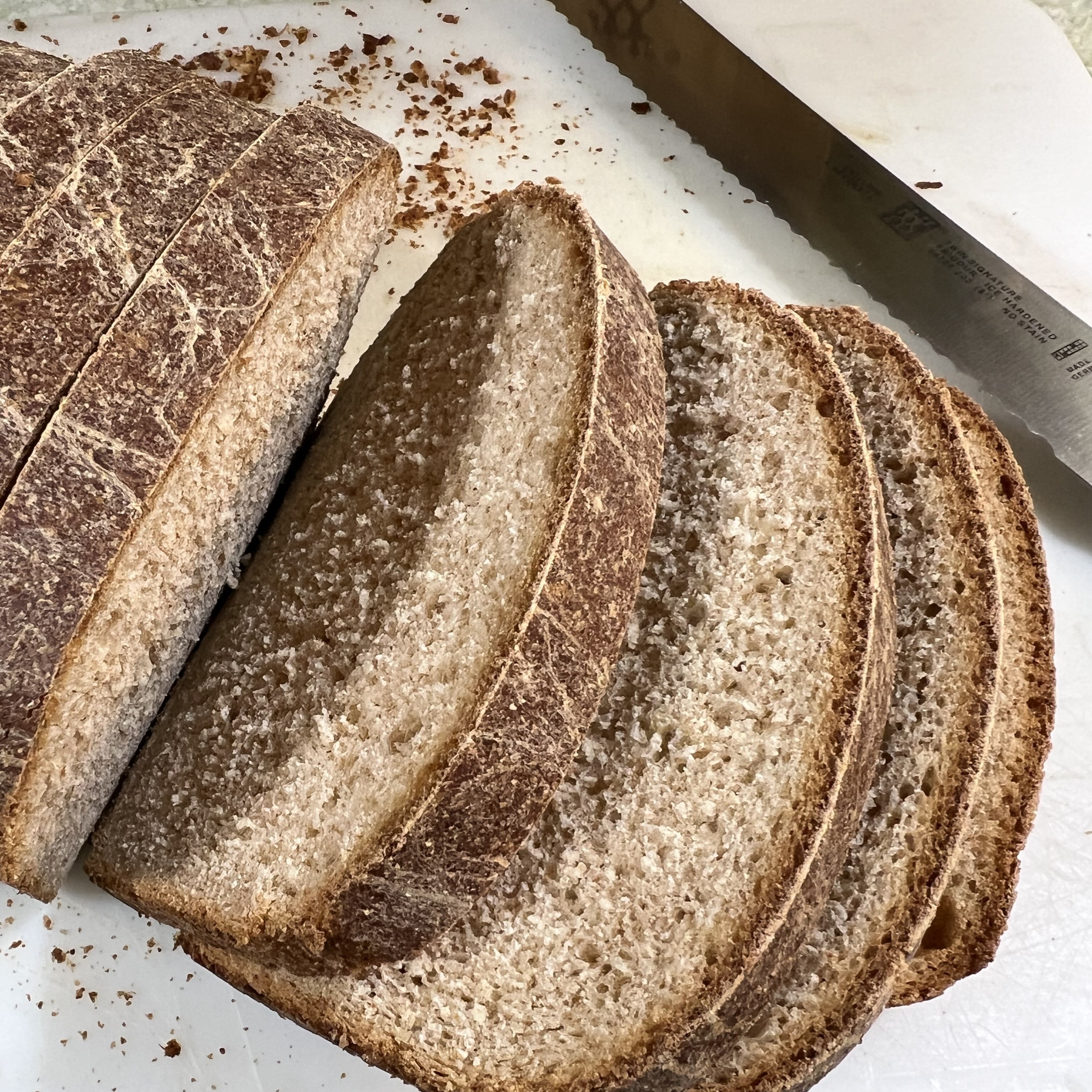 With the winter weather we’ve been having, I’ve been baking a lot of bread recently. Baking bread seems to cause hesitation in a lot of bakers. I’m not sure if it’s the yeast or the kneading, but I have found that bread is actually quite forgiving. As long as the water isn’t too hot, you won’t kill the yeast. By dissolving it in the warm water before you add it to the dough, you will see that it’s active. If it doesn’t foam up, throw it out and use new yeast (check the expiration dates). You don’t want to let the dough rise too much, or else it will collapse and you’ll end up with very flat loaves. This is a recipe I’ve been using for several years and always have good results. The bread stays soft for several days. I will usually slice both loaves and keep one in the kitchen for eating immediately and one goes into the freezer for later. (I just place it in a freezer bag – no thawing needed if you’re toasting it.) If you haven’t tried making your own bread, I hope this encourages you to take the leap. Nothing smells better than fresh baked bread you’ve made yourself.