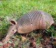 Armadillo - Armored Mammals The Nine-banded Armadillo, Daspusy Novemcinctus, is one interesting mammal. The bony plates that cover an armadillo's body account for their name, which translated from Spanish mean "little armored one." While the common name says "Nine-banded", 7-11 bands may be present (other sources, such as The Mammals of Texas Online Edition, specifically number the bands present at nine.) The armor serves to provide protection from predators, while other anatomical adaptations allow armadillos to be adept at constructing burrows and digging up grubs and other invertebrates to eat. |