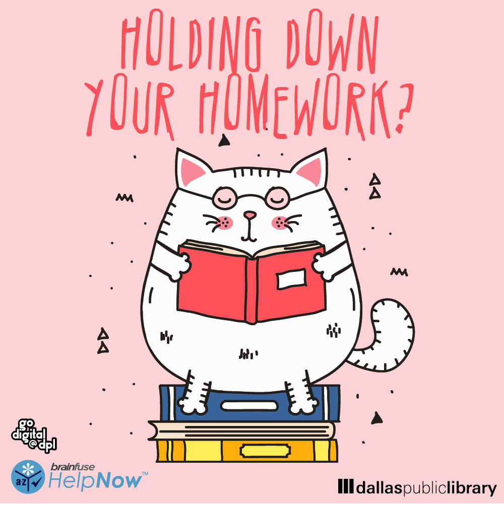 Use Homework Help Now from Dallas Public Library. Live tutors are available daily 2 p.m. to midnight and can help with math, language arts, science, book reports, foreign language - most school subjects for grades K-12 and some college level.