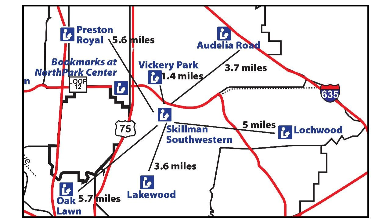 We know how much residents love this branch and use it faithfully. While it won't be the same, we hope you find a similar sense of community and belonging at one of our other library locations. The map below shows you the closest libraries to Skillman Southwestern. |