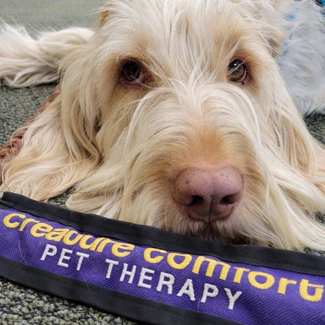 Mind n Mingle: Tails & Textbooks Tuesday, January 13th 5:00-6:00pm ALLERGEN ALERT Bogged down by homework? Come relax with therapy dogs! Creature Comforts will be visiting Teen Room from 5-6pm. Drop in to grab some snacks, work on your school work, and pet some dogs for stress relief. No registration required!