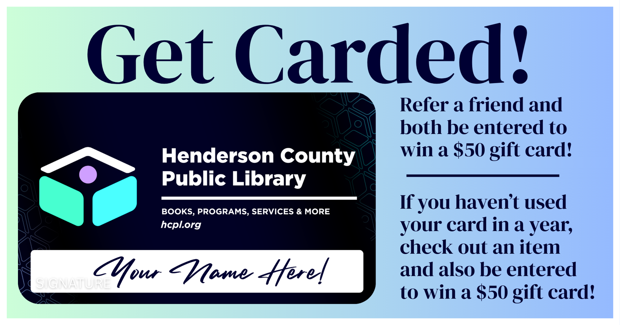 Are you an educator in Henderson County without an Educator Card? We can help with that! Educator Cards offer extended borrowing periods and more library checkouts. Stop by the library or contact us to find out more.