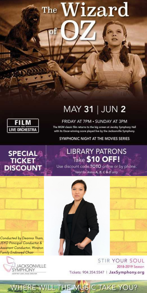 The MGM classic film returns to the big screen at Jacoby Symphony Hall with its Oscar-winning score played live by the Jacksonville Symphony. This film that “has youngsters’ eyes shining and brought a quietly amused gleam to the wiser ones of the oldsters” (NY Times) features a young Judy Garland singing the timeless hit “Somewhere Over the Rainbow.” Be sure to bring the children and grandchildren.