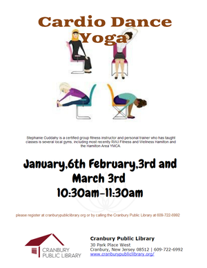 Stephanie Cuddahy is a certified group fitness instructor and personal trainer who has taught classes in several local gyms, including most recently RWJ Fitness and Wellness Hamilton and the Hamilton Area YMCA. Her cardio chair dance class came from her love of low impact aerobic exercise and the need to make the class appropriate for all bodies and fitness levels. AND it needs to be fun!