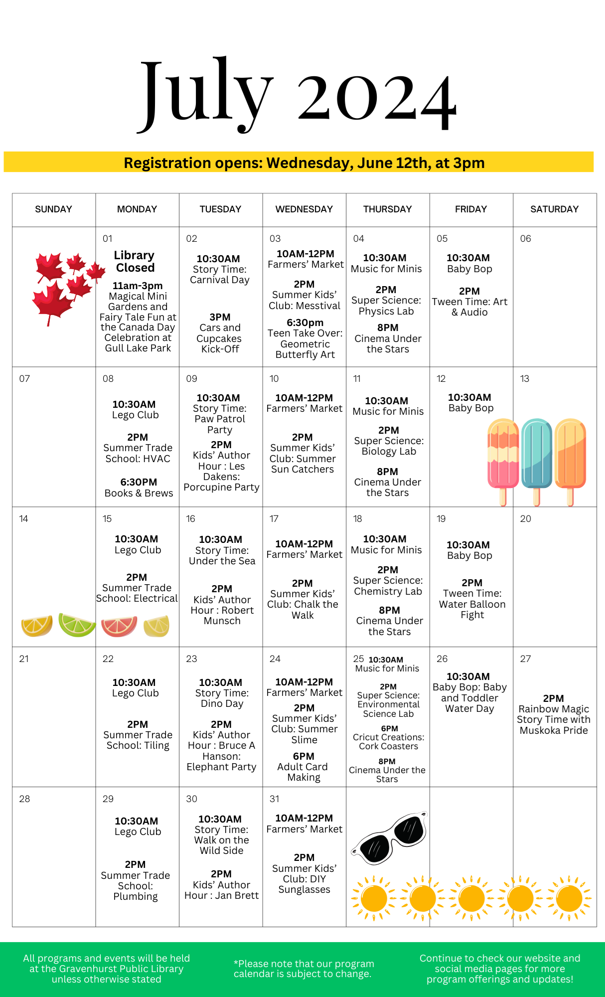 Please join Miss Jenn and Miss Hannah at Gull Lake Rotary Park from 11-3 with the Muskoka Master Gardeners to make magical mini gardens and enjoy other family-friendly activities at the GPL Fairytale Fun Tent!