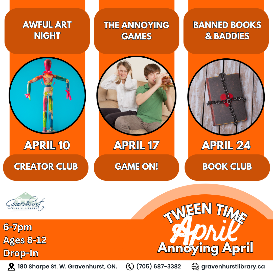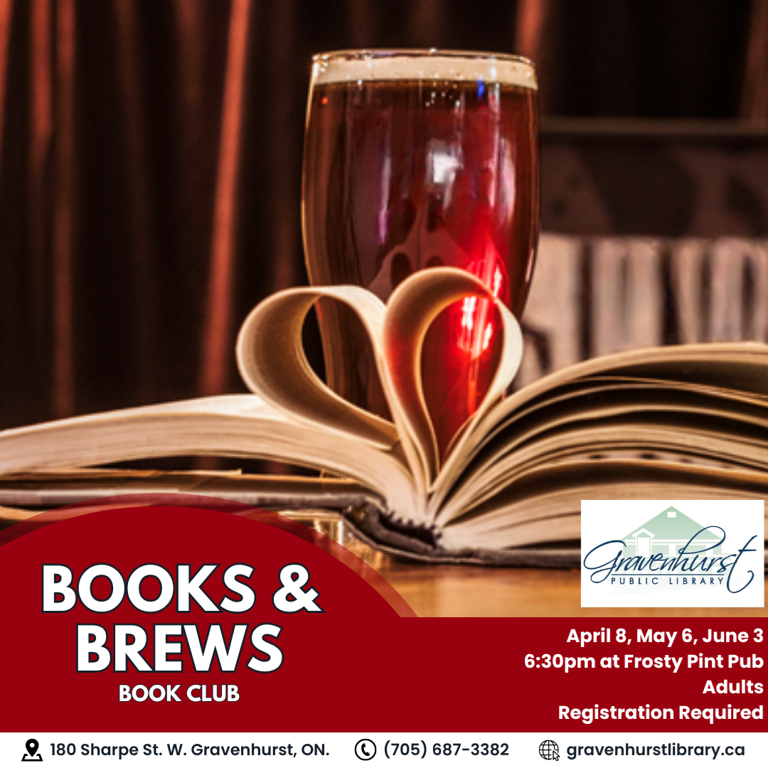 A couple of spots have opened up in our Books and Brews Book Club; contact sarah.santos@gravenhurst.ca to secure