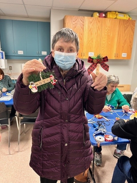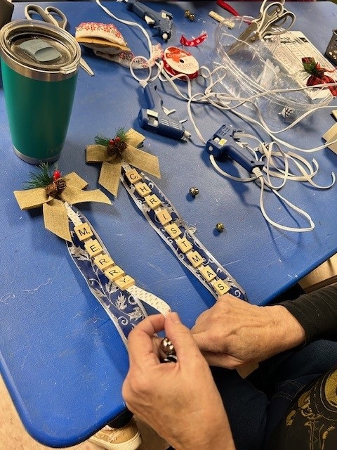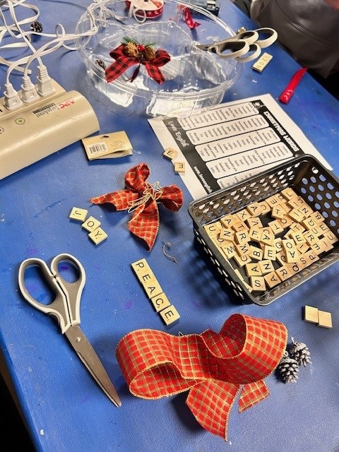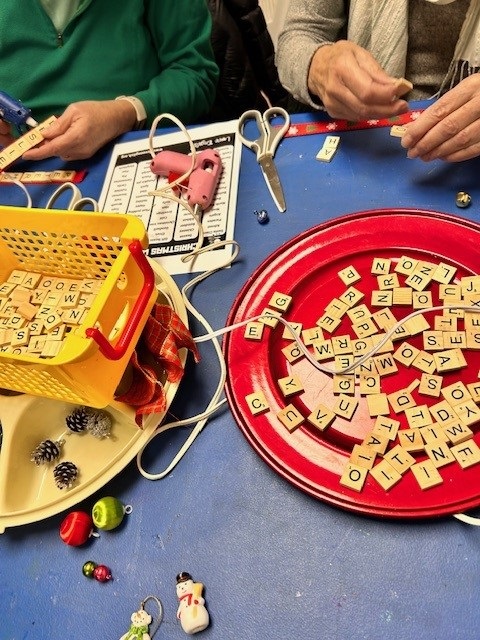 Megan had a full house of crafters working on designing and assembling some lovely Scrabble tree ornaments!