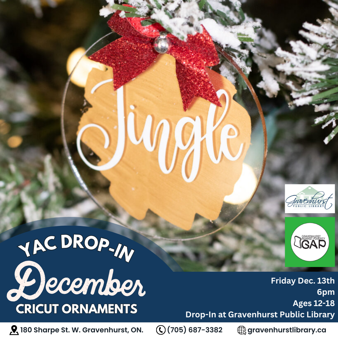 Join Miss Jenn for a Cricut class for youth, partnered with G.A.P.'s Young Adult Centre (YAC) on Friday Dec. 13th.