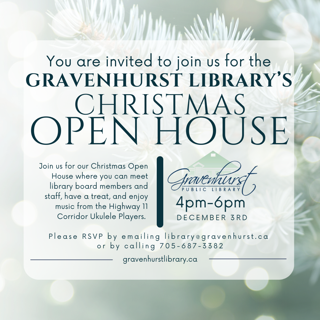 Gravenhurst Public Library 180 Sharpe St. W. Gravenhurst, ON P1P 1J1 705-687-3382 www.gravenhurstlibrary.ca