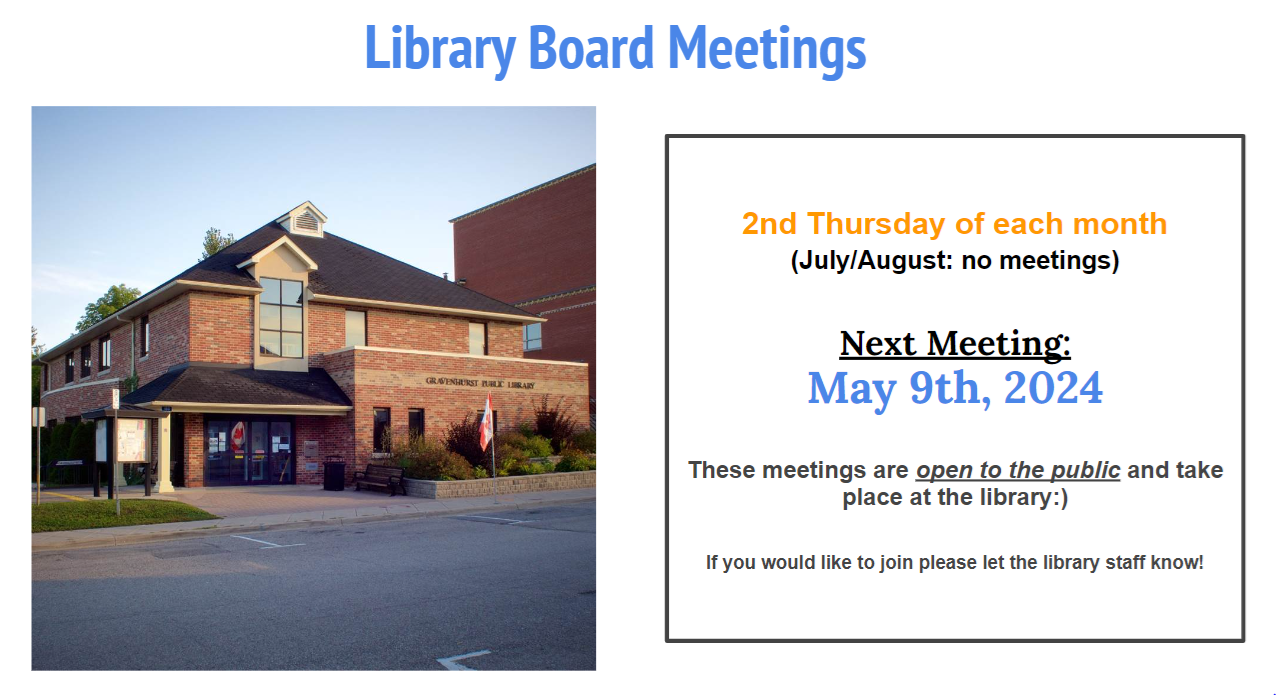 Email Sarah at sarah.santos@gravenhurst.ca to inquire about joining our book club!