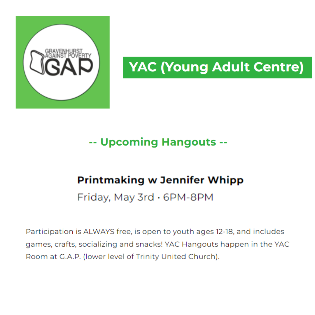 Miss Jenn is on the move--any tweens and teens who come to our GPL programs are welcome to follow her to G.A.P.'s Young Adult Centre (YAC) on Friday, May 3rd!