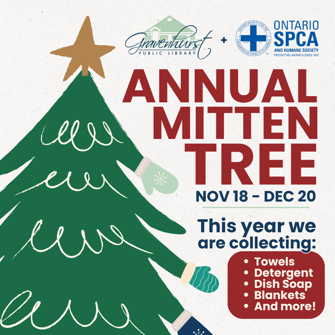 Our Annual Mitten Tree collection begins on the 18th. We will accept homemade mittens, hats and other items as per usual, but another focus this year will be collecting items for the OSPCA. Take a look at this link for the OSPCA's Amazon wishlist: https://www.amazon.ca/hz/wishlist/ls/2XQENXQSY1QVR?ref_=wl_share