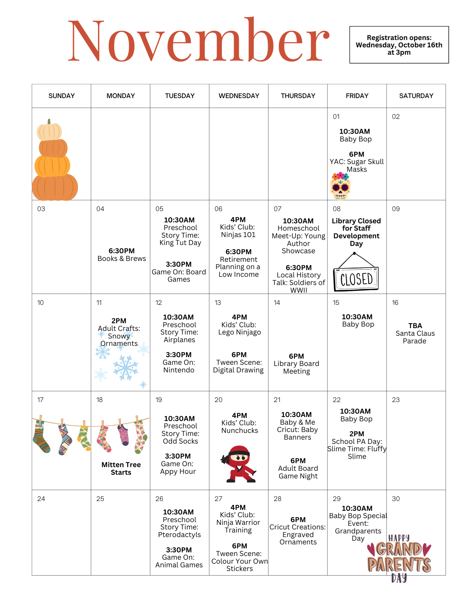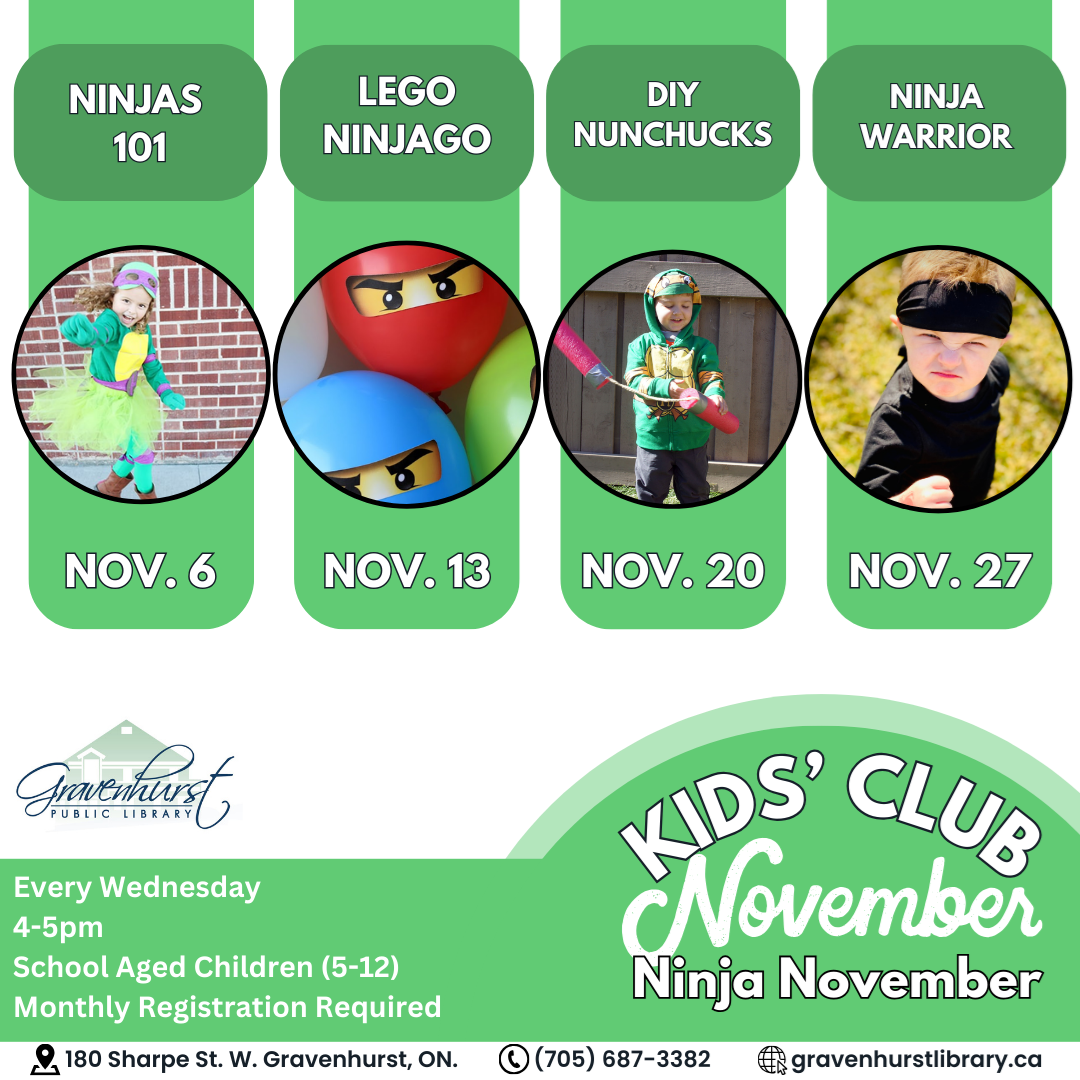 Our ever-popular Kids' Club is packed with Ninja-themed fun all throughout November!
