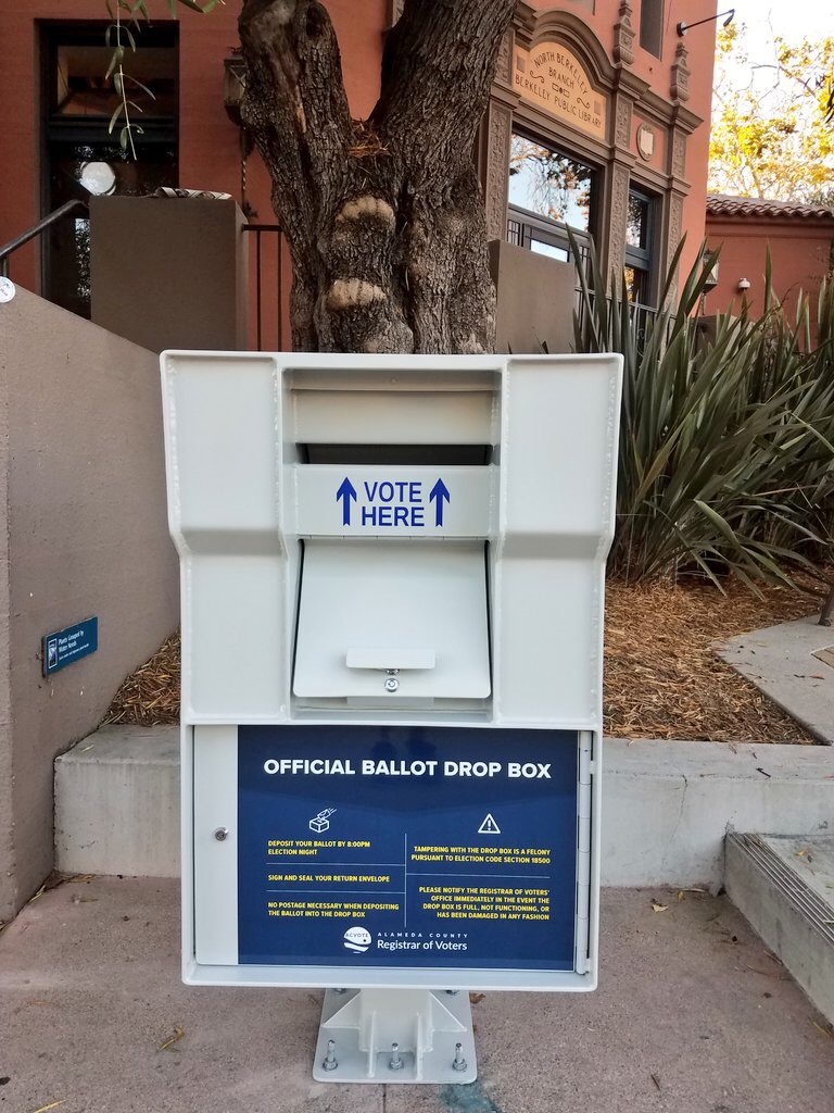 Official Alameda County ballot drop boxes are at three of our Libraries: Come drop off your signed ballots at one of the drop boxes.