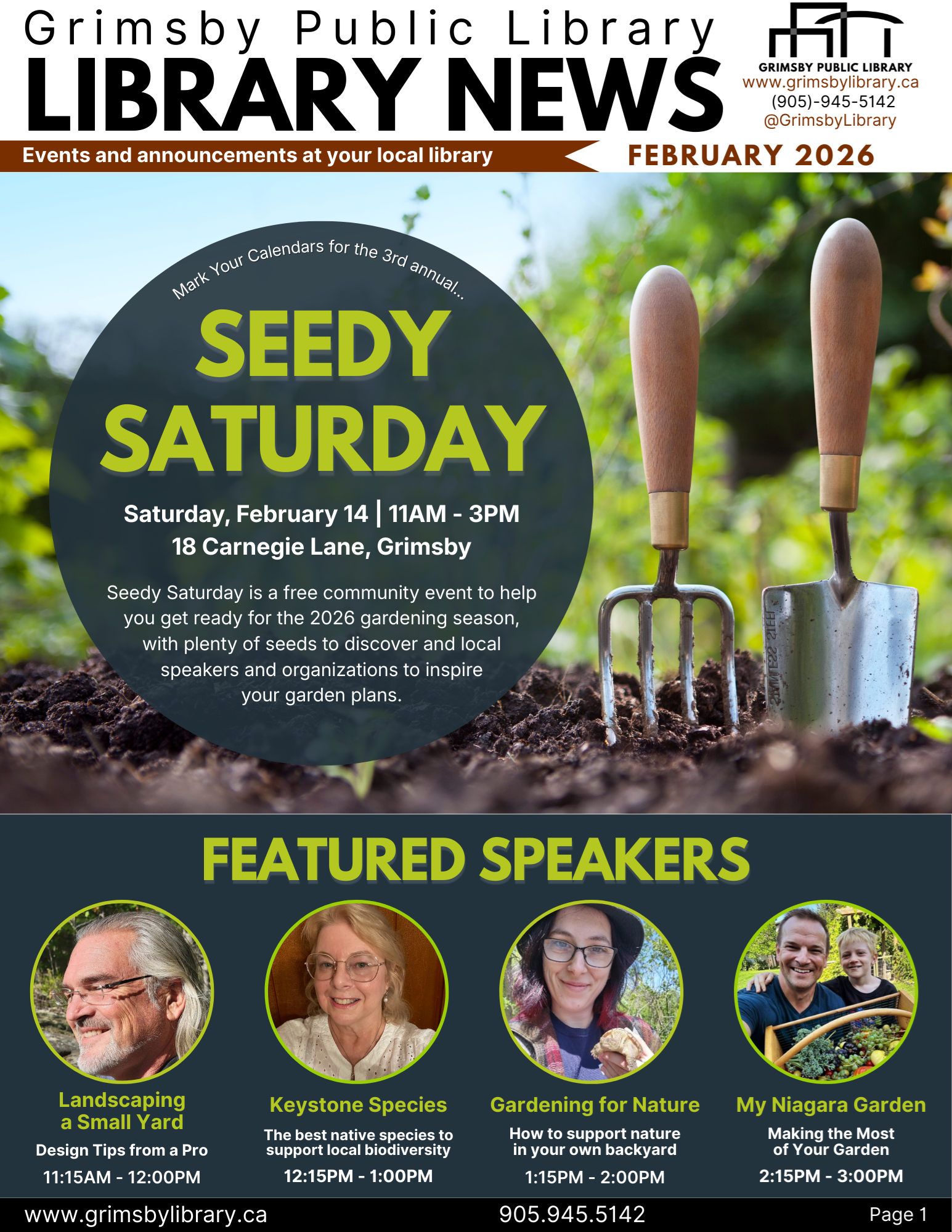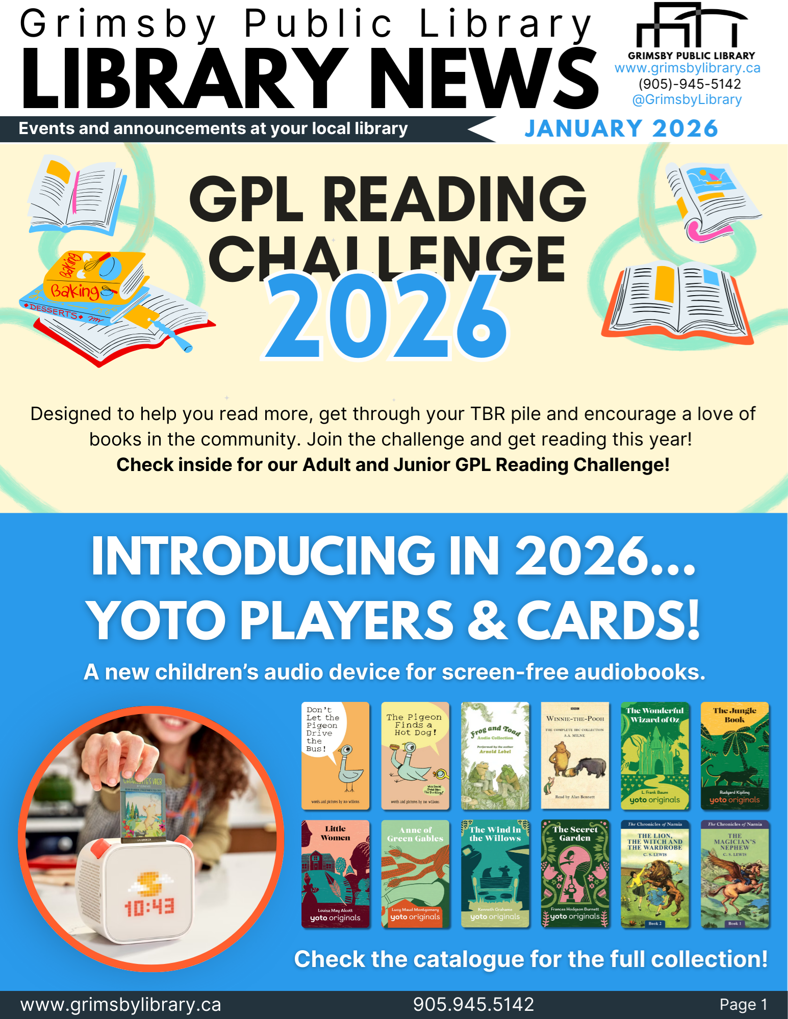 is published monthly to provide readers a look at events and happenings at the Grimsby Public Library.