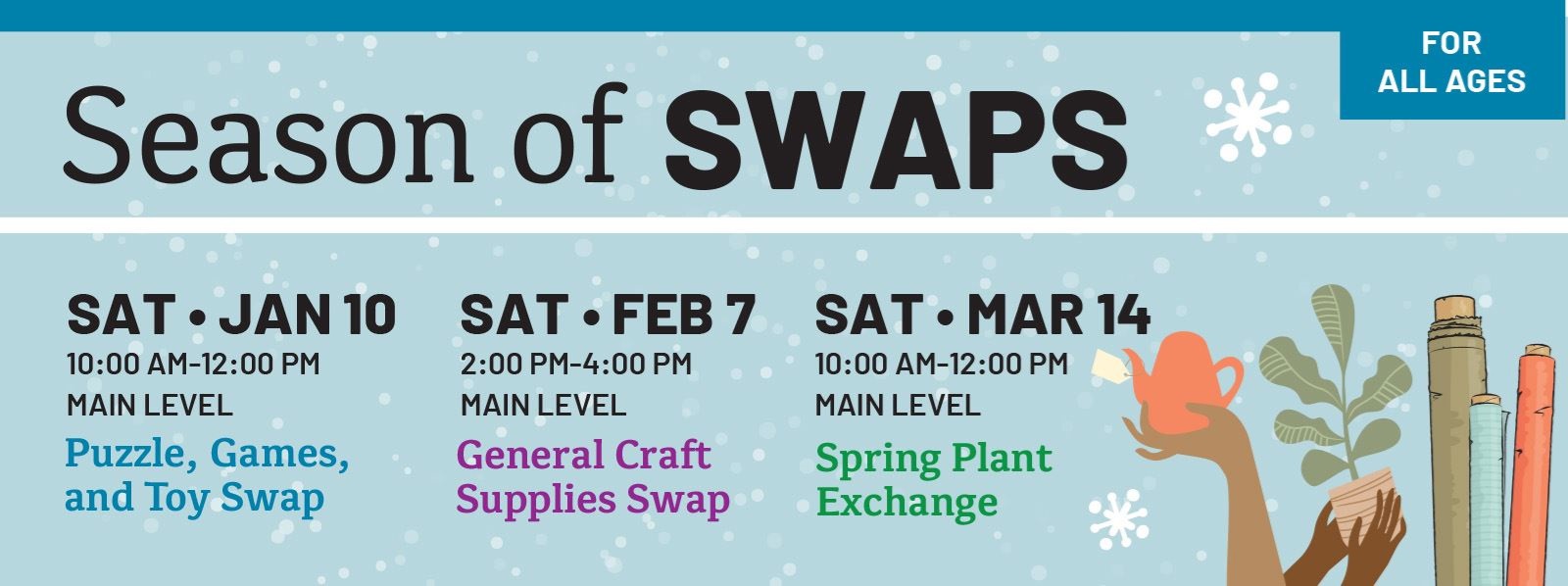 Saturday, March 28 from 10:00 AM to 1:00 PM Front of library
