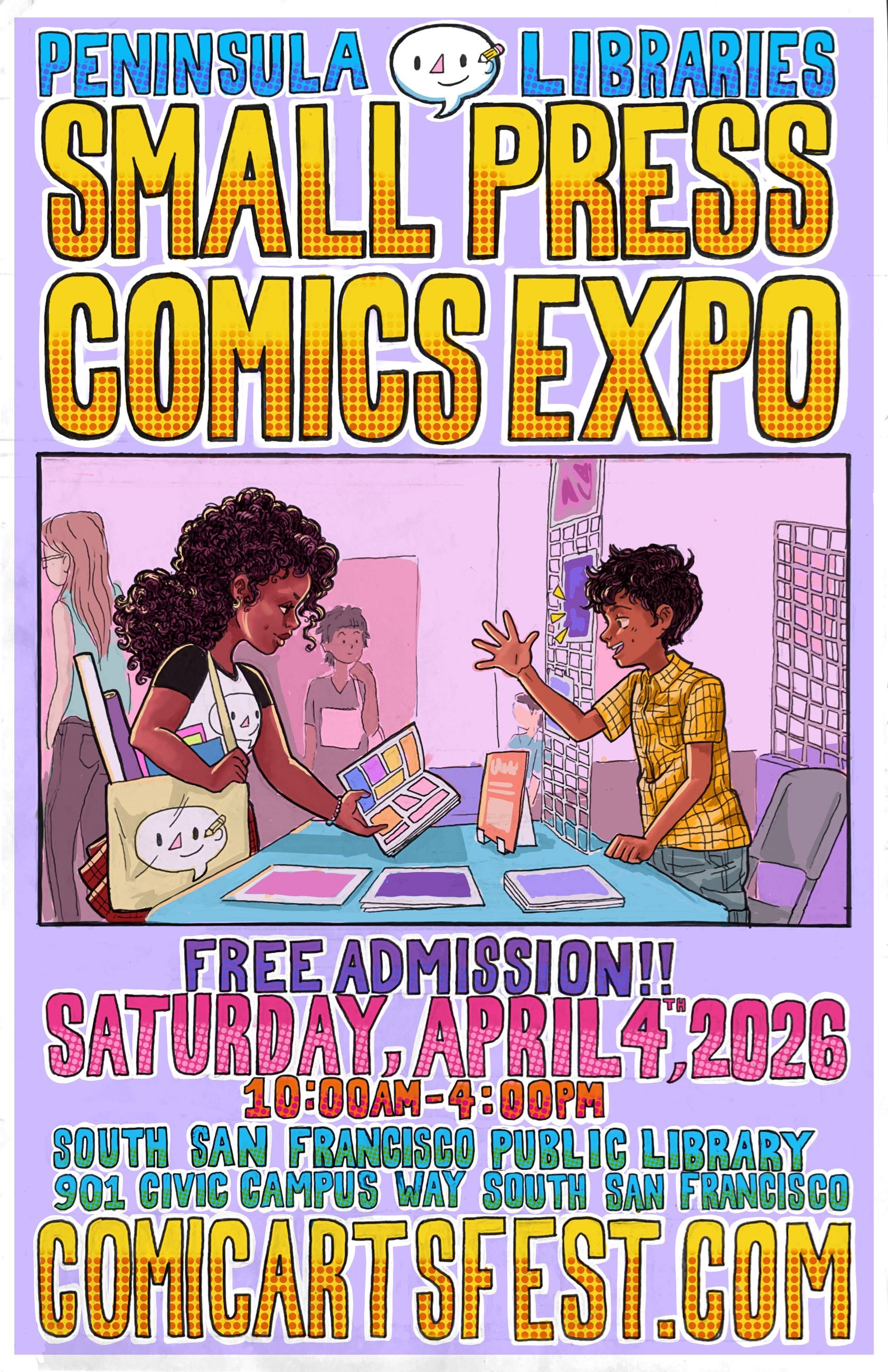 Celebrate 10 years of Peninsula Libraries Comic Arts Fest with us this April 2026! We’ve stood by our mission to celebrate comics and honor them as visual art and literature. Since 2015, you’ve helped enable aspiring artists and inspired readers of all ages through author visits, hands-on workshops, Small Press Comics Expos (SPCE) highlighting local creators and other comics-related programs. Thank you for your ongoing love of comics!