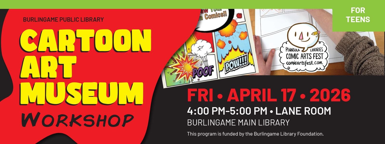 This program is funded by the Burlingame Library Foundation and Peninsula Libraries Comic Arts Fest