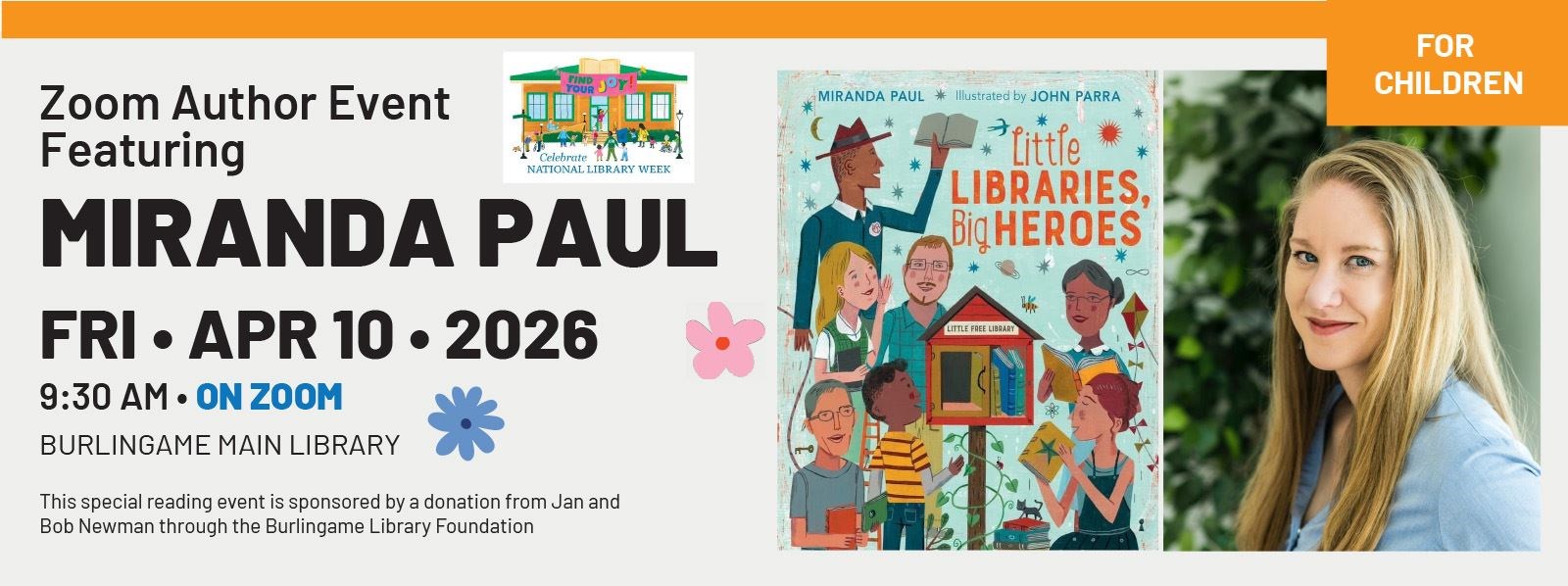 Join us for a Special National Library Week Zoom Author Event Featuring Miranda Paul Talking about her book, Little Libraries, Big Heroes