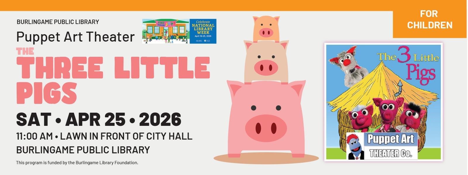 Celebrate National Library Week with a special performance by Puppet Art Theater featuring The Three Little Pigs