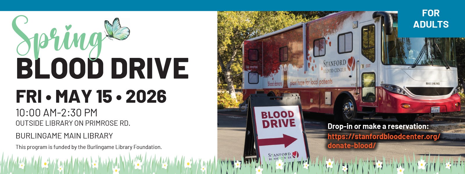 The Stanford Blood Center bus returns in May. Drop-ins are welcome or register at their site: https://sbcdonor.org/donor/schedules/zip. It takes about 30 minutes to donate and your donation could help up to three people.