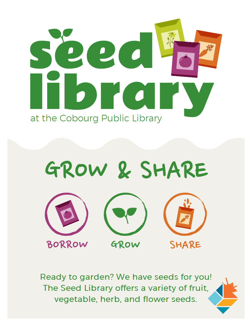Our Seed Library is OPEN - All LocationsCome check out our collection of seeds for you to Borrow, Grow and Return! Stop at the desk to let us know how many you borrowed so we can track the numbers.Contact Rachel at rspence@cobourg.library.on.ca to learn more