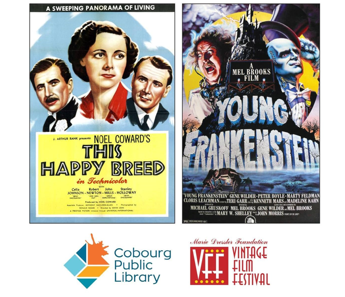 A partnership event between the Cobourg Public Library's Monday Movie Matinee and the Marie Dressler Foundations Vintage Film Festival, invites you to a FREE screening of two brilliant films based on this year's VFF theme "Family Dynamics": Noel Coward and David Lean's "This Happy Breed" (1944) and Mel Brook's "Young Frankenstein" (1974). There will be light refreshments and the two feature films, ending at about 5pm. Even though the event is free we do have limited seating for 60. Please contact Cathie Houston for your FREE tickets by Email: cathiehouston@xplornet.com, or Phone:: 289-251-0359