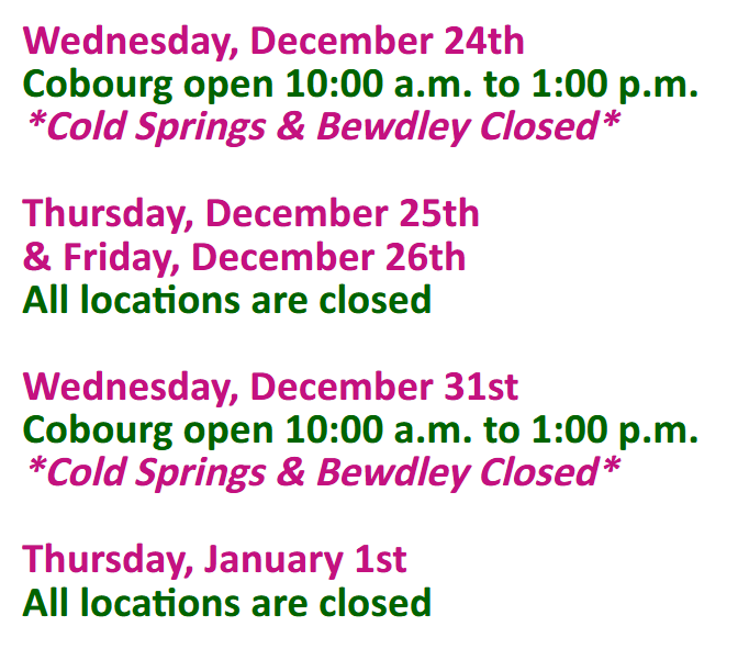Tuesday, December 2nd to Wednesday, December 4th | 1:00 p.m. to 4:00 p.m. | Cobourg Public Library |