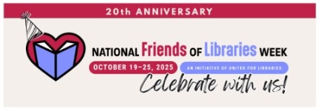 National Friends of Libraries week is celebrating its 20th anniversary!! October 19-25, take the opportunity to celebrate and recognize the Friends of YOUR library.