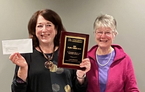 A Special Celebration! Jean Currie, LTA President, (in the pink jacket) came to Monticello to present the Velma K. Moore award from the Library Trustee Section of NYLA to Lynn Skolnick. The Velma K. Moore Award is one that LTA presents to a volunteer person or organization who has made exemplary contributions to library services. The special event took place at the Ethelbert B. Crawford Public Library on December 12th, 2023. On hand to extend their congratulations were many familiar faces including: (from left) Joanna Goldfarb, RCLS Sustainability Consultant; Martha Anderson, former RCLS Trustee and LTA Liaison for the Board; Helen Rados, RCLS Trustee; Melanie Olson, retired E.B. Crawford staffer and library trustee; Peggy McGuire, Director of Livingston Manor Free Library; and Randall Enos, retired RCLS Youth Services Consultant. Photos provided by Mary Paige Lang-Clouse, Director of E.B. Crawford Public Library, Monticello