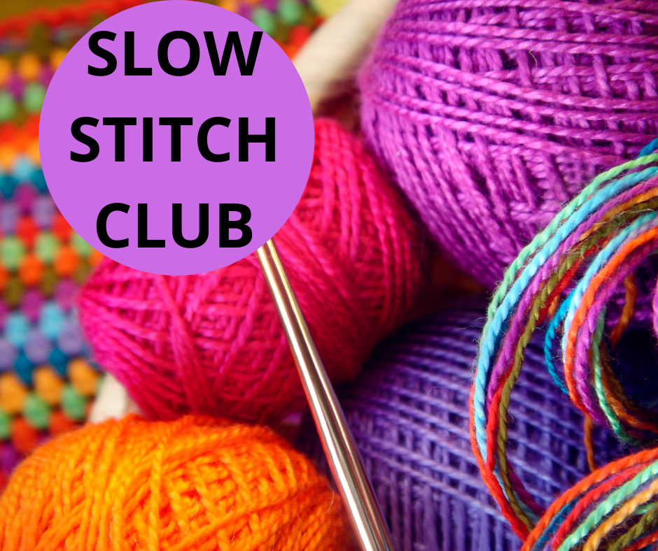 Slow Stitch Club Thursdays 10:30 AM - 12:30 PM Any portable project qualifies: quilt, knit, crochet, felt, sew, embroider and more. Enjoy some "me time", a bit of socializing, and show and share while artfully stitching a favorite project.