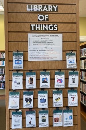 Library of ThingsOur Library of Things is a collection of useful items you can check out with your Gardiner Library card. Items will be added regularly. More information here. As we build our collection, we are concentrating on items people do not need often, and consequently, do not want to necessarily purchase. Suggestions are always welcome.