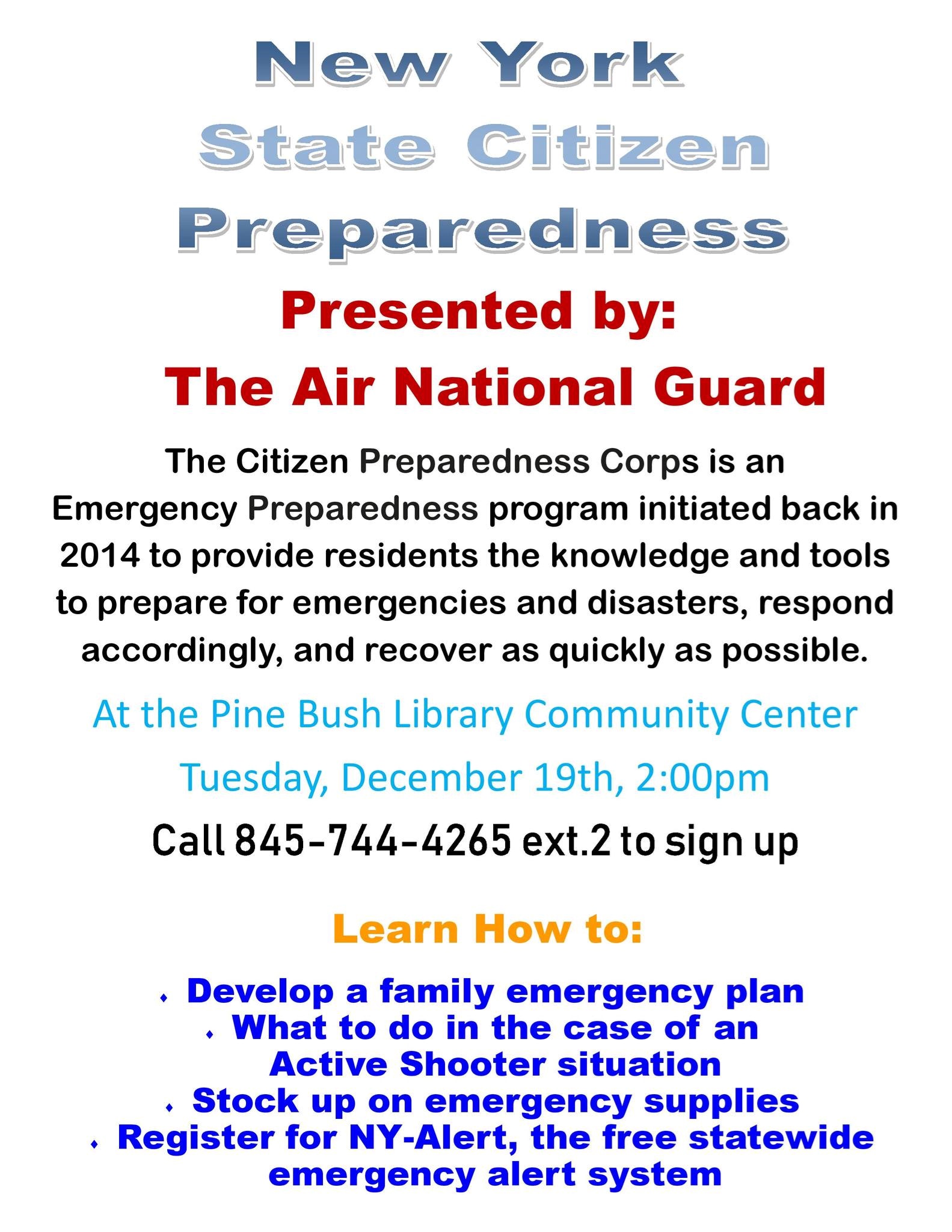 December 12/16: Cookie Walk 12/19: Citizen Preparedness January 1/10: Energy Efficiency 1/13: Learn About Air Pressure