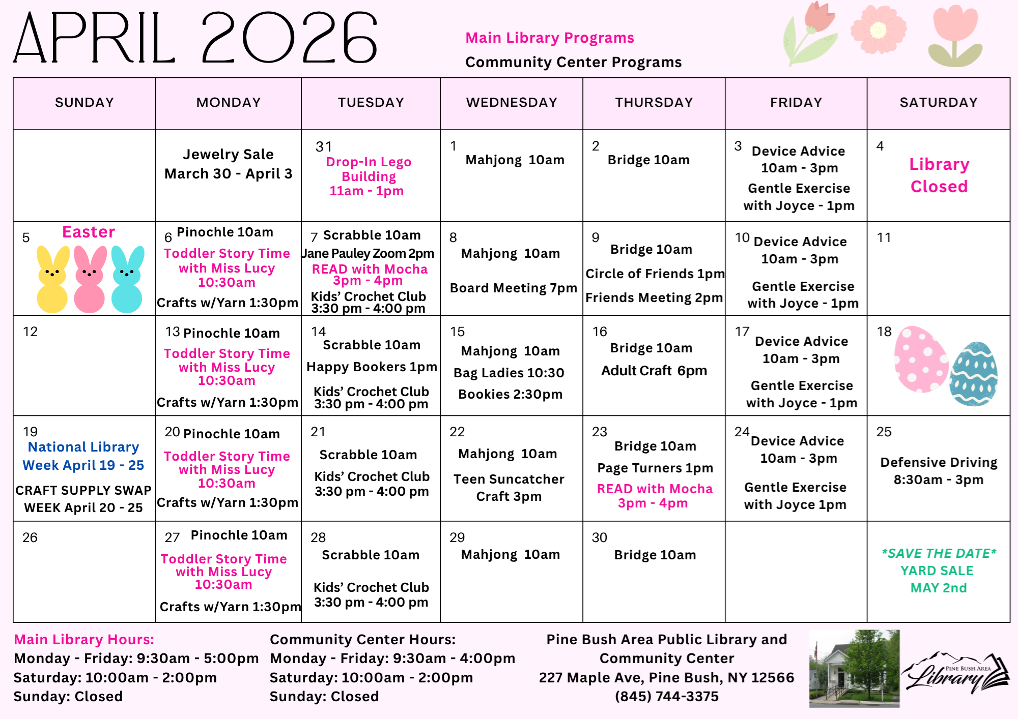 APRIL NEWS BULLETIN Upcoming events at the Pine Bush Area Public Library April 2026 Volume 107