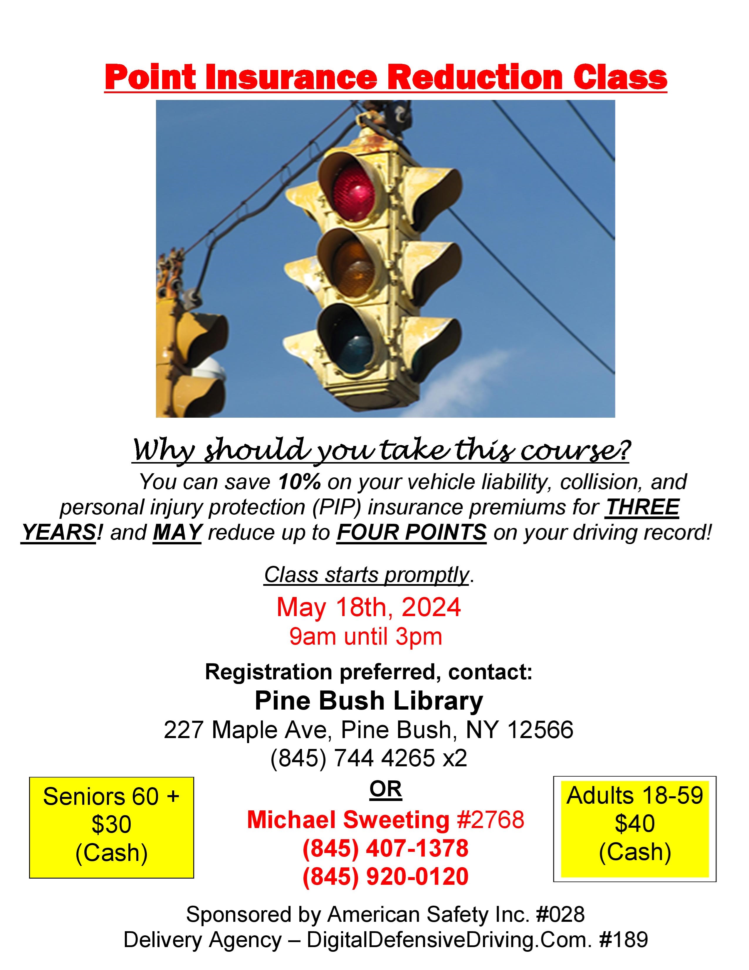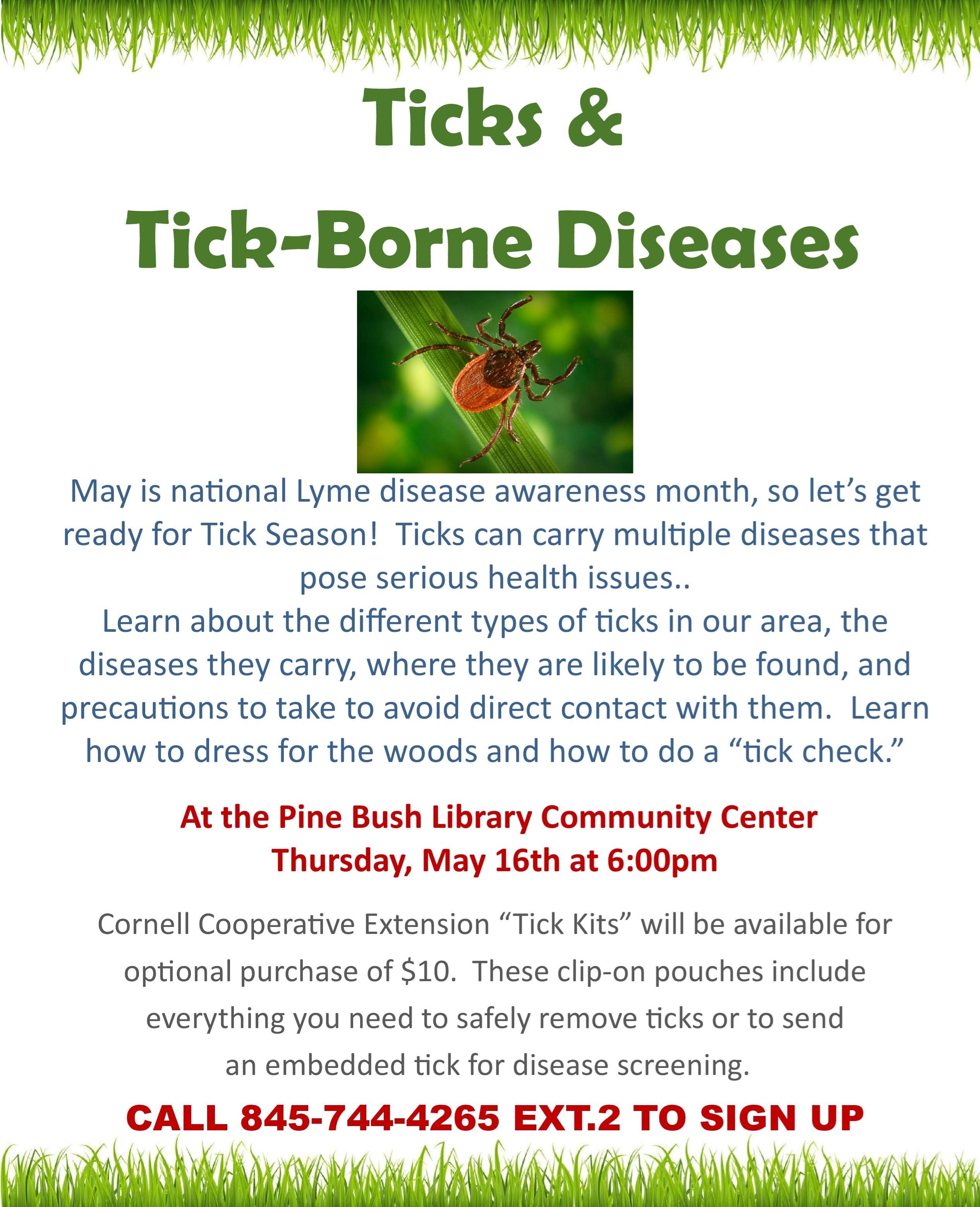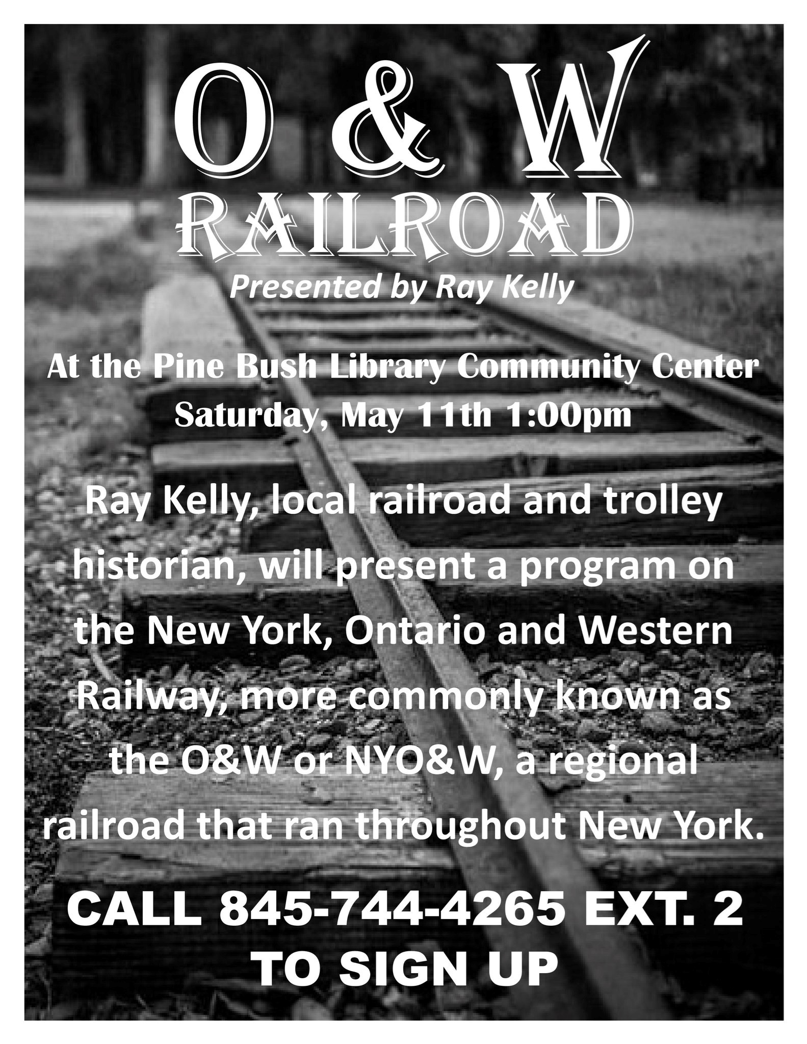 May 5/4: Annual Library Yard Sale 5/11: O&W Railroad with Ray Kelly 5/15: Ticks and Tick Borne Diseases Presentation 5/18: Defensive Driving 5/29: Borscht Belt Culture with Alex Prizgintas 5/31: Homemade Fertilizer with Kevin Cannon June 6/1: UFO Fair 6/8: Smokey Bear with the Pine Bush Fire Dept.