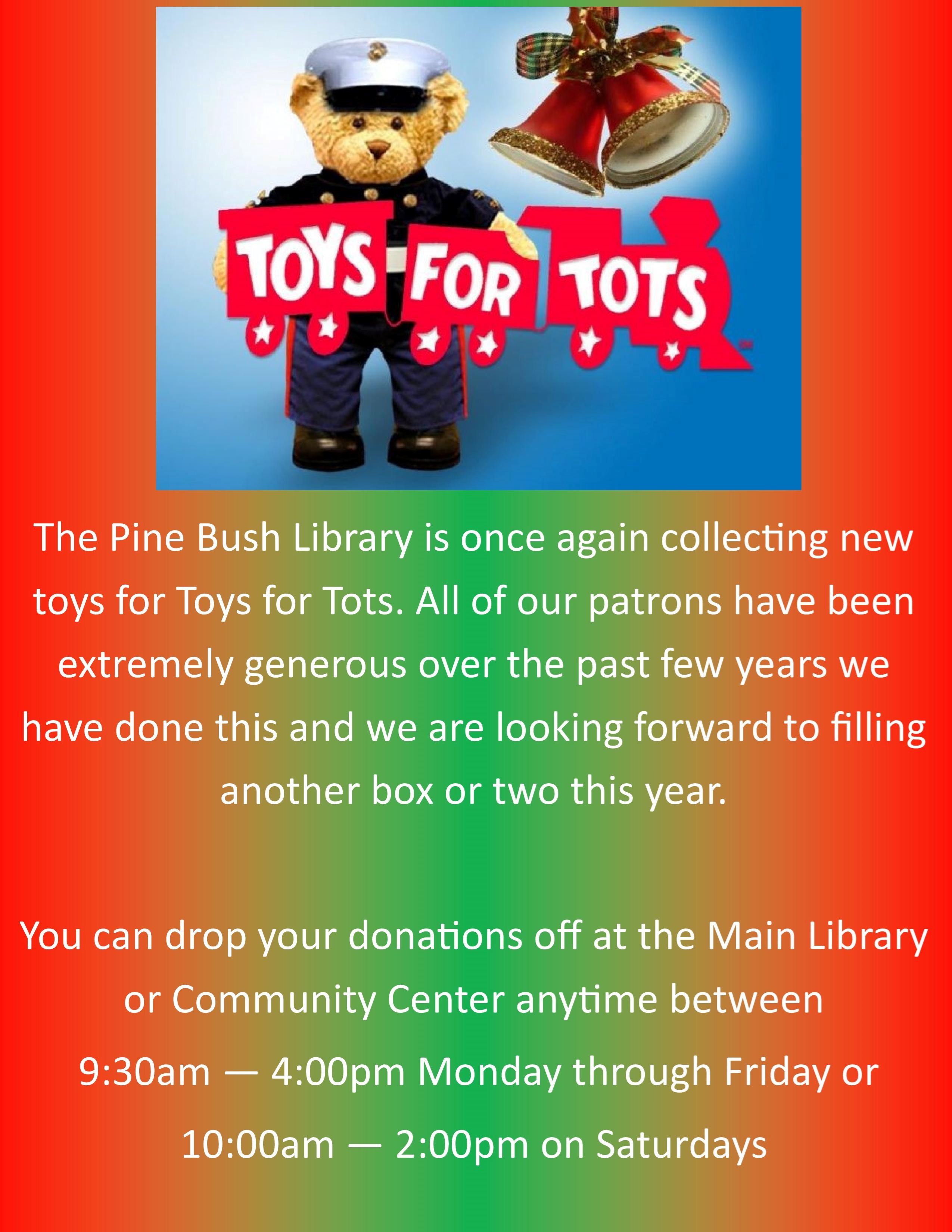 Here is a short list of the charitable initiatives we are currently a part of: Bullville Methodist Church Food Pantry We are collecting any and all food items as well as cleaning supplies, hygiene products, baby products, etc. Donations can be dropped off at either the main library or community center. Jewish Family Service At Jewish Family Service of Orange County, we are dedicated to welcoming all members of the entire Orange County community connecting them to resources and services that can provide support and comfort. Lions Club International Recycle For Sight You can drop off your gently used eye glasses in the collection box at the community center. Keep an eye on our website, Facebook page, and newsletter for any new opportunities to give back. If you have a charity or program you would like us to collect for or promote, please reach out by calling 845-744-4265 ext. 2, emailing PBL@rcls.org, or sending us a message on Facebook @PineBushPublicLibrary.