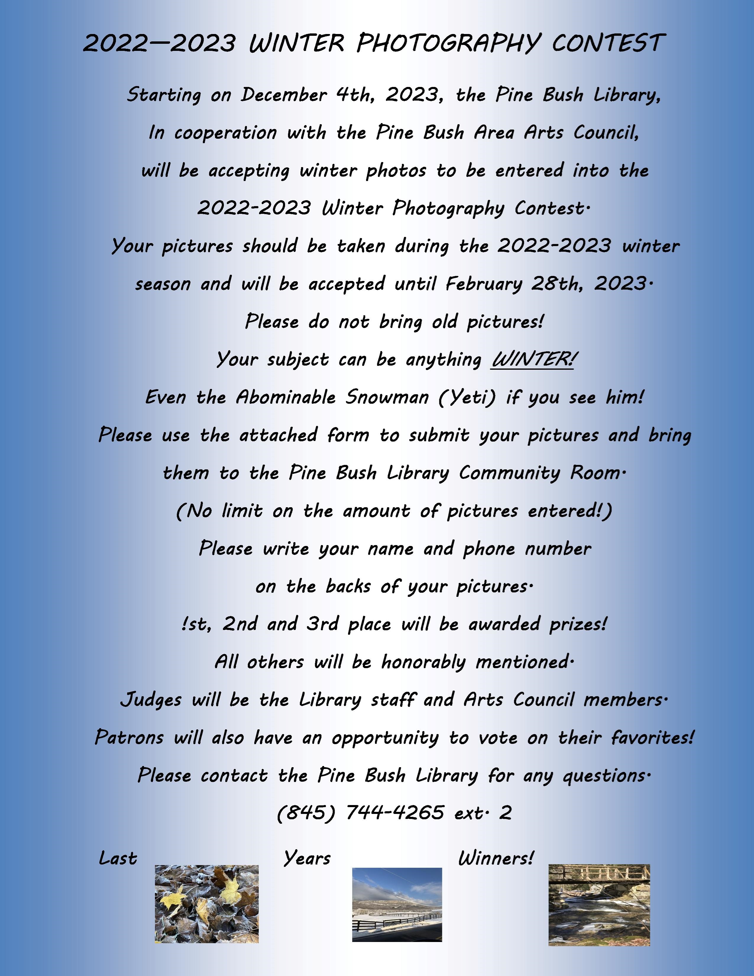 ATTENTION!!! The Winter Photography Contest has been extended. We will now be accepting submissions up to February 28th