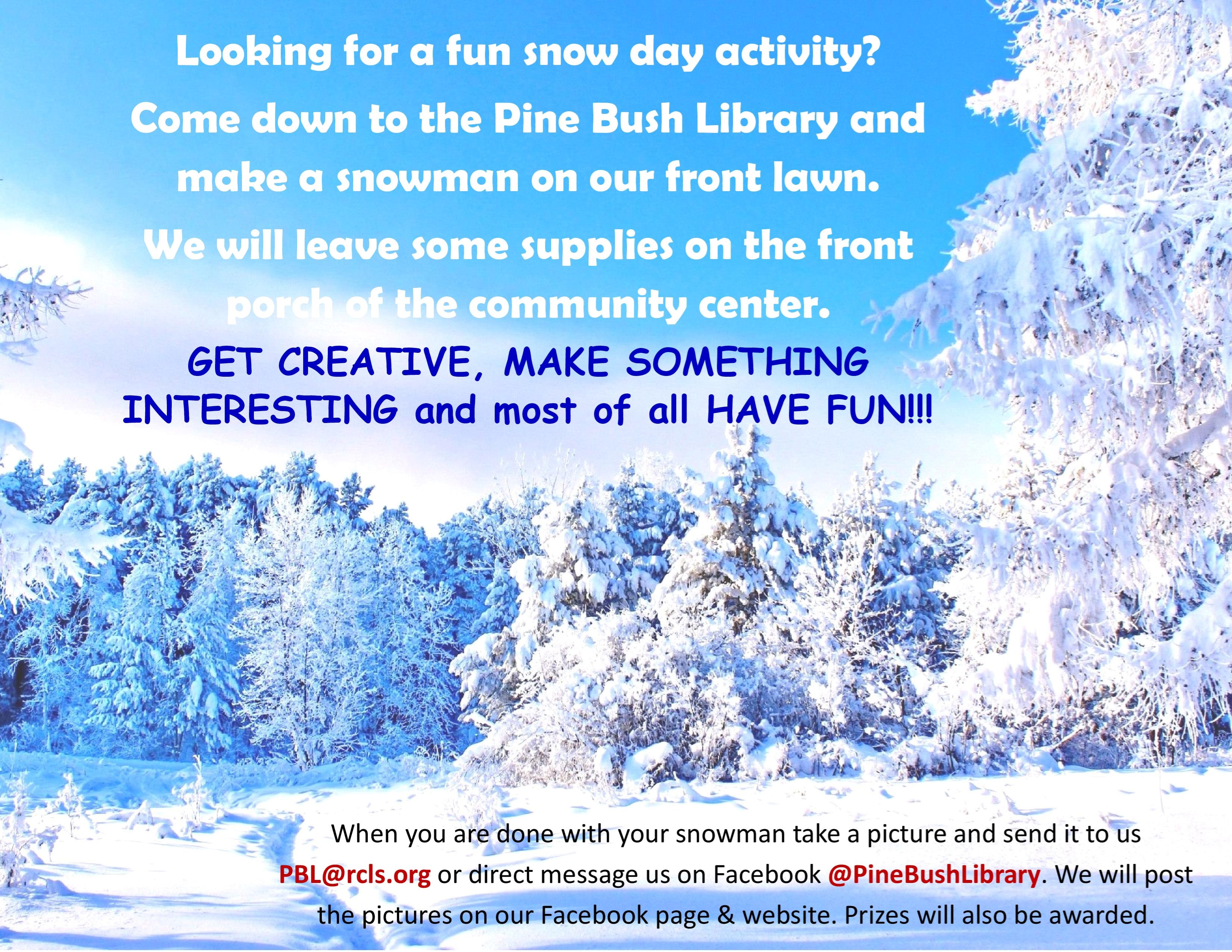 What Can Your Library Do For You? We here at the Pine Bush Library are always thinking of new, educational, and fun ways to serve our patrons. In the last two years we have created a YouTube channel, gotten a pass so you can access NY State Parks for free, created unique programs such as stargazing and Next Stop Adventure, brought in someone to help you with your technology problems and more. Now we want to hear from YOU, our loyal patrons. Tell us what programs, activities, services, etc. you want your favorite library to offer. If you have an idea for a new program, activity, service, event or anything else please reach out. You can email us PBL@rcls.org, call us 845-744-4265 ext. 2, send us a message on Facebook @PineBushPublicLibrary or just come by the Community Center and tell us in person. |