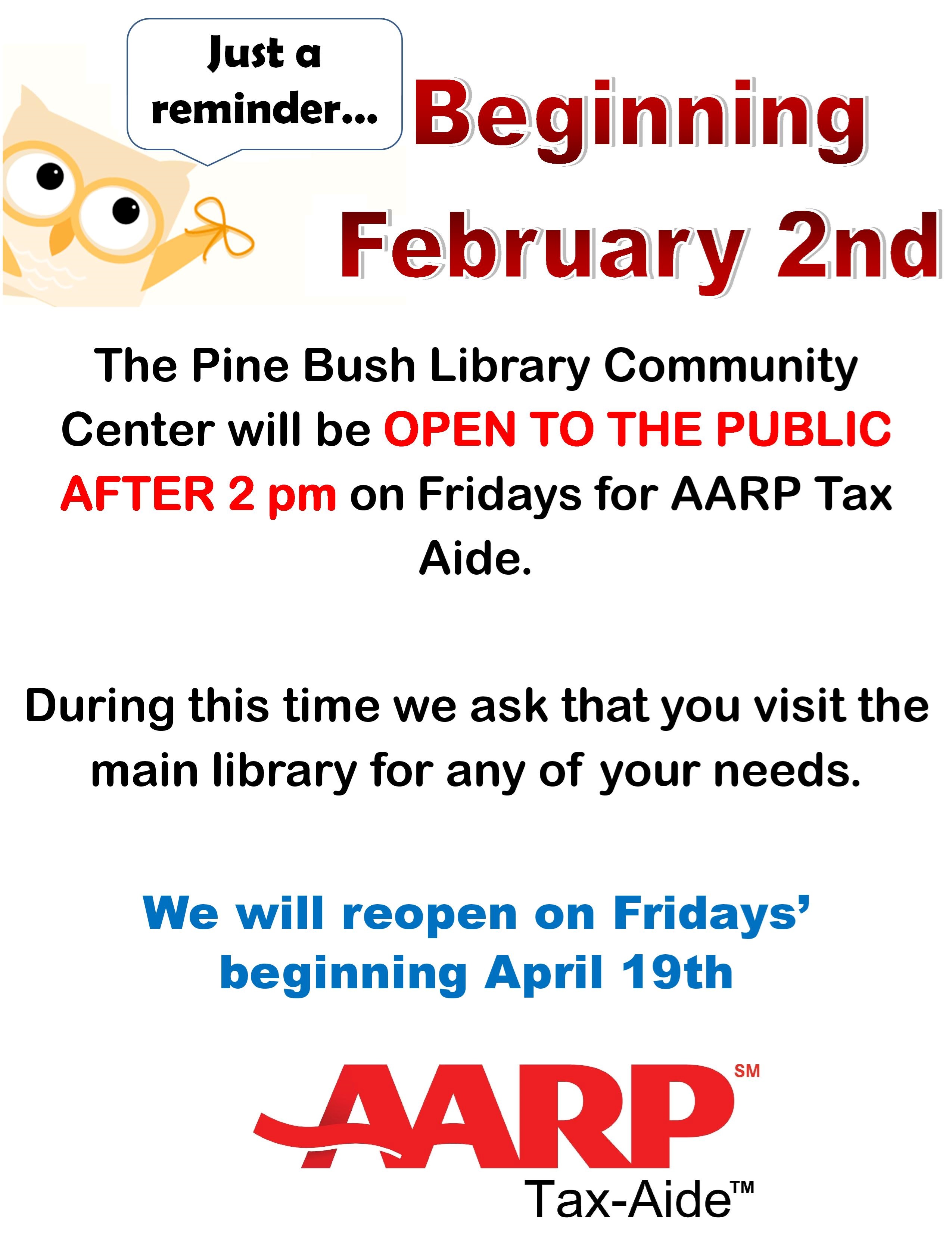 In the event of inclement weather call 845-744-3375 after 8am to check if the library is open. We no longer follow Pine Bush Schools schedule. |