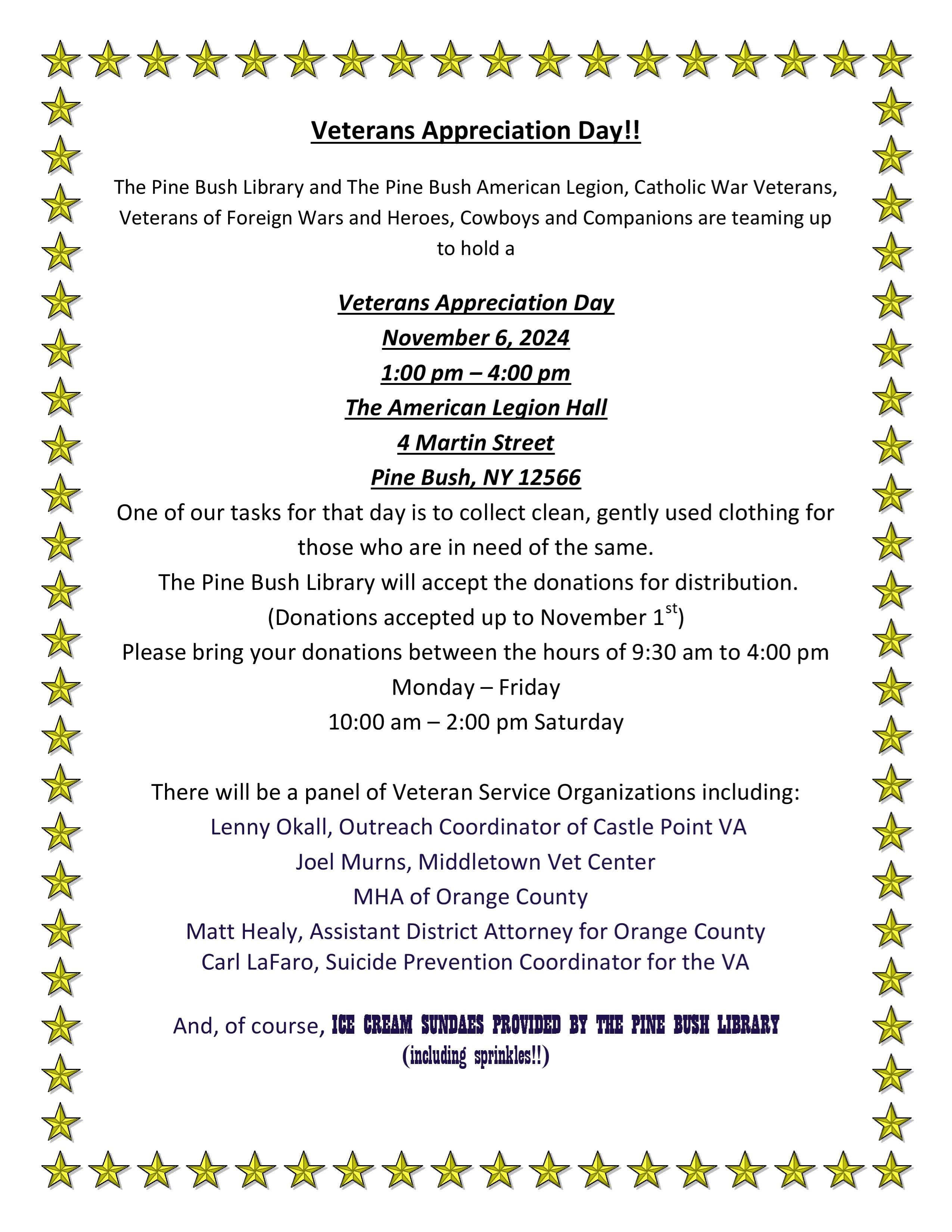 The Pine Bush Library will be CLOSED Saturday, August 31st & Monday, September 2nd in observance of Labor Day