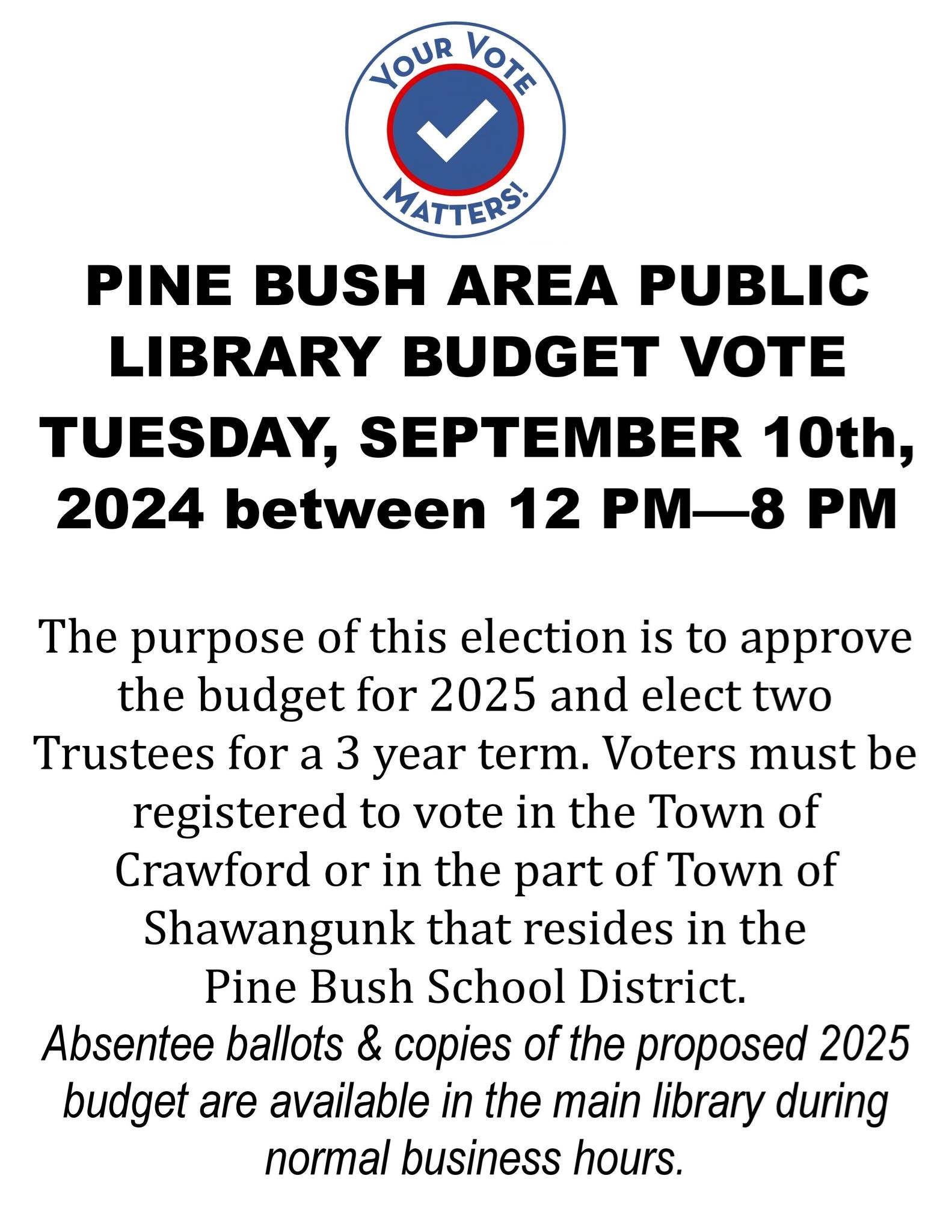 Pine Bush Area Public Library District 223-227 Maple Avenue P.O. Box 63 Pine Bush, New York 12566-0063 (845)744-3375pinebusharealibrary.org |
