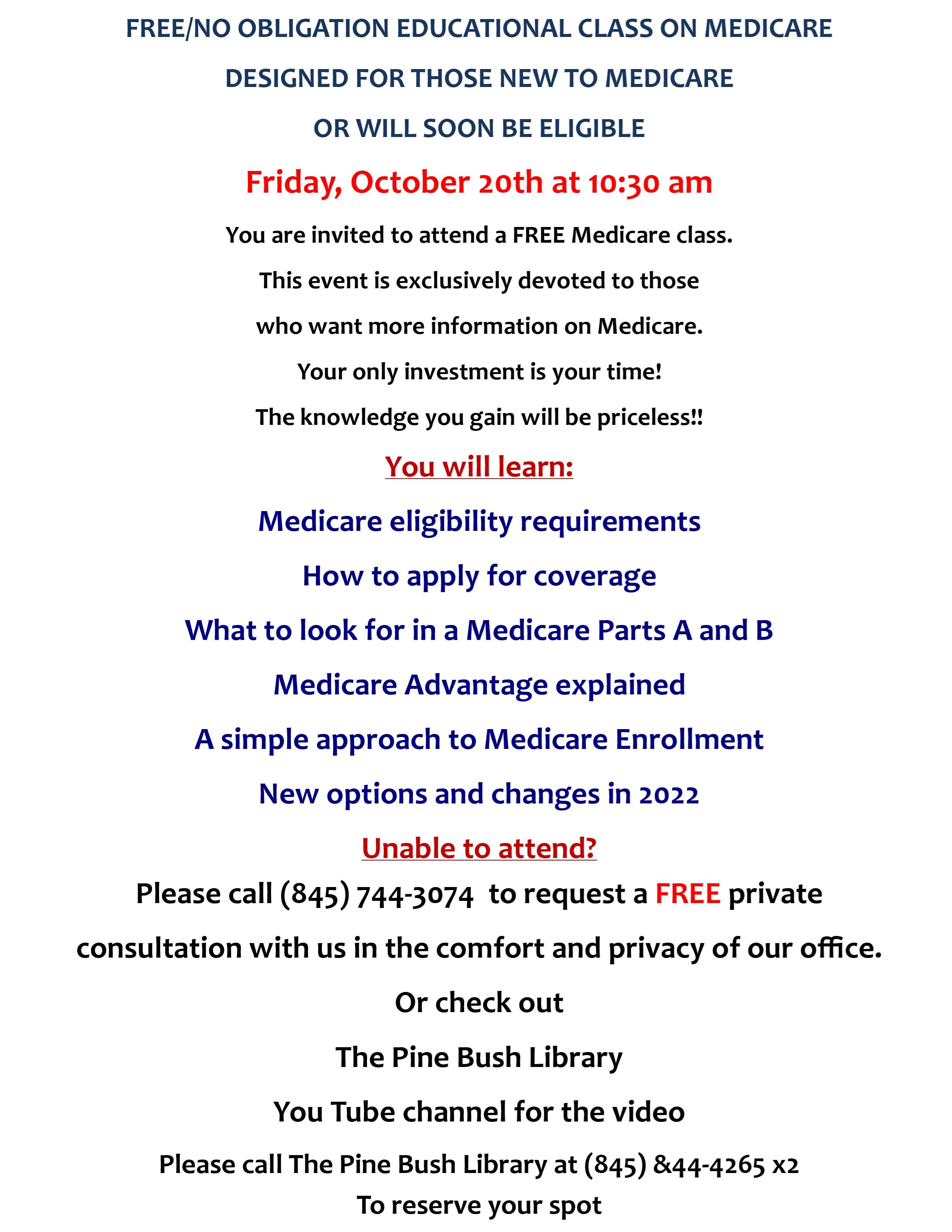 October 10/11: Introduction to Basic Drawing 10/12: Good Night and Sweet Dreams 10/20: Educational Class on Medicare 10/22: Nate the Dog Man 10/26: How to Become your own Best Friend 10/29: Halloween Pet Costume Parade November 11/16: Aging Gracefully This is not a list of all the activities we have planned in the coming months and some of these dates are subject to change due to weather or other circumstances beyond our control. Any schedule changes will be posted on our Facebook Page and Website as soon as we are aware of them.