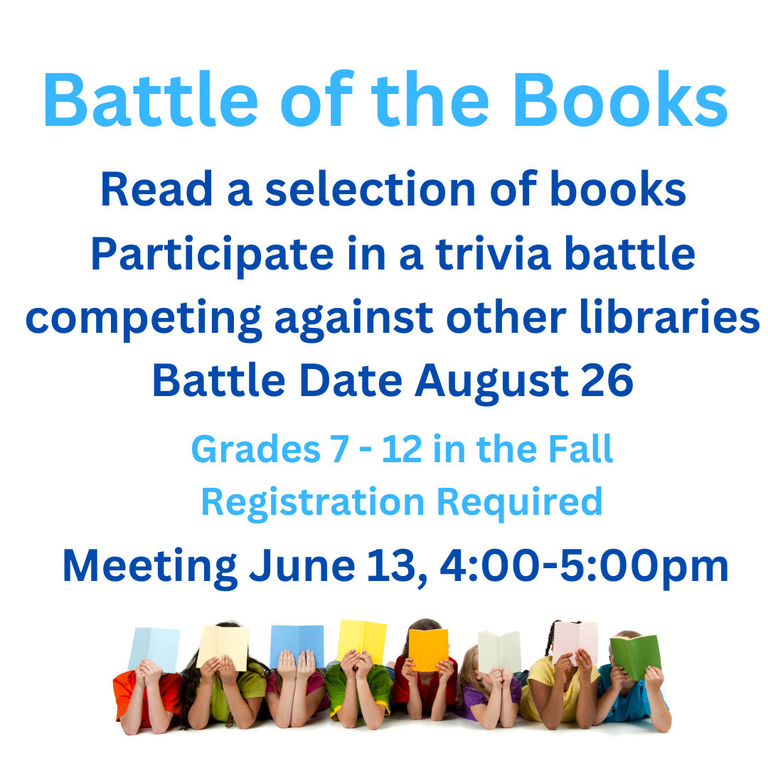 Summer Reading Challenge For Children ages 5 and up Keep track of all the time you spend reading this summer, and earn weekly prizes. Sign up begins in-person & online on July 5.