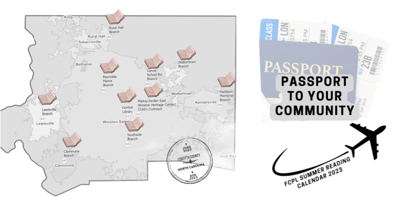 The Forsyth County Public Library's Summer Reading Program Passport to Your Community will run from June 9 through August 4. Visit the Clemmons Branch in June for these events: |