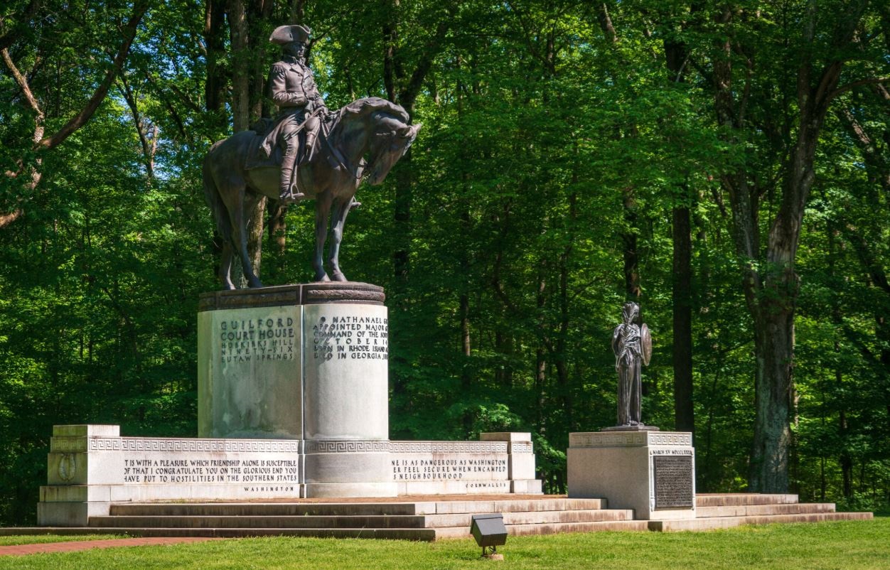 Explore the Southern Campaign of the American Revolutionary War as it led to the pivotal Battle of Guilford Courthouse. After set backs like Battle of Camden, American forces under Nathanael Greene used strategic maneuvering to weaken the British across North Carolina.